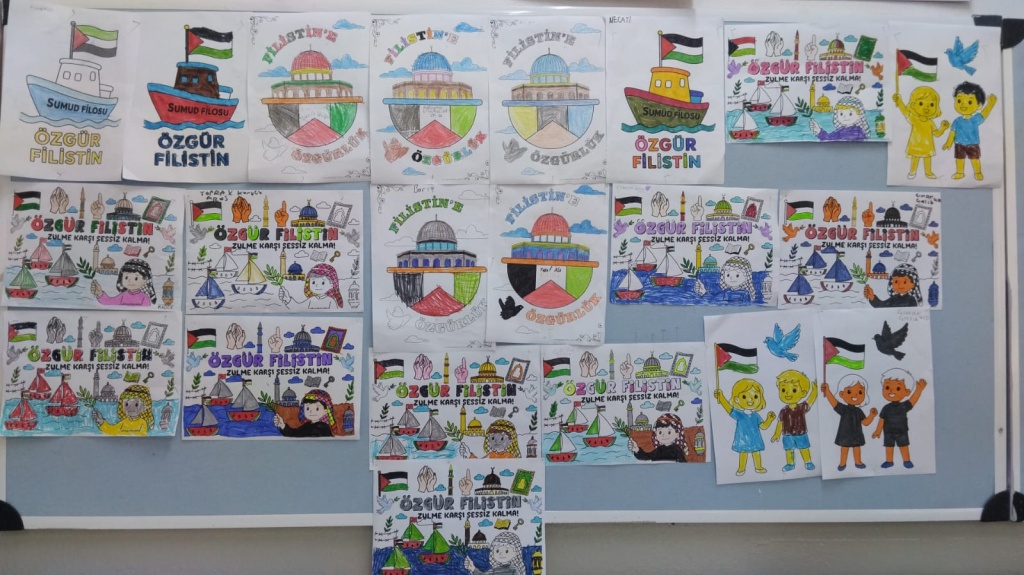 Bakanlık tarafından 81 ile gönderilen “Filistin farkındalık etkinlikleri” konulu yazıda, bölgede ve küresel kamuoyunda büyük hassasiyetle takip edilen Filistin meselesi ile Küresel Sumud Filosu gündeminin, eğitim camiasının ortak vicdanını güçlü biçimde temsil etme sorumluluğunu beraberinde getirdiği belirtildi.Yolu sevgiden geçen, yüreği insanlık için atan herkese ve tabi ki ''Sumud Filosuna'' minik yüreklerden kocaman selamlar yolluyoruz. Özellikle öğrencilerimizin aileleriyle birlikte yaptığı her gemiye bir resim çalışması ve sembolik görseller içimizdeki umudu güçlendirmektedir. İnşallah bu umut Gazzeyi ve Gazze çocuklarını özgürleştirecektir.